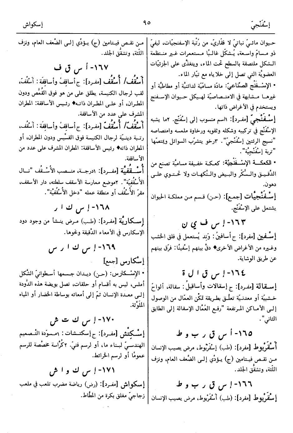 إسْقَرْبوط [مفرد]: (طب) أَسْقَرْبوط، مرض يصيب الإنسان من نقص فيتامين (ج) يؤدِّي إلى الضَّعف العام، ونزف اللّثة، وتشقُّق الجلد.