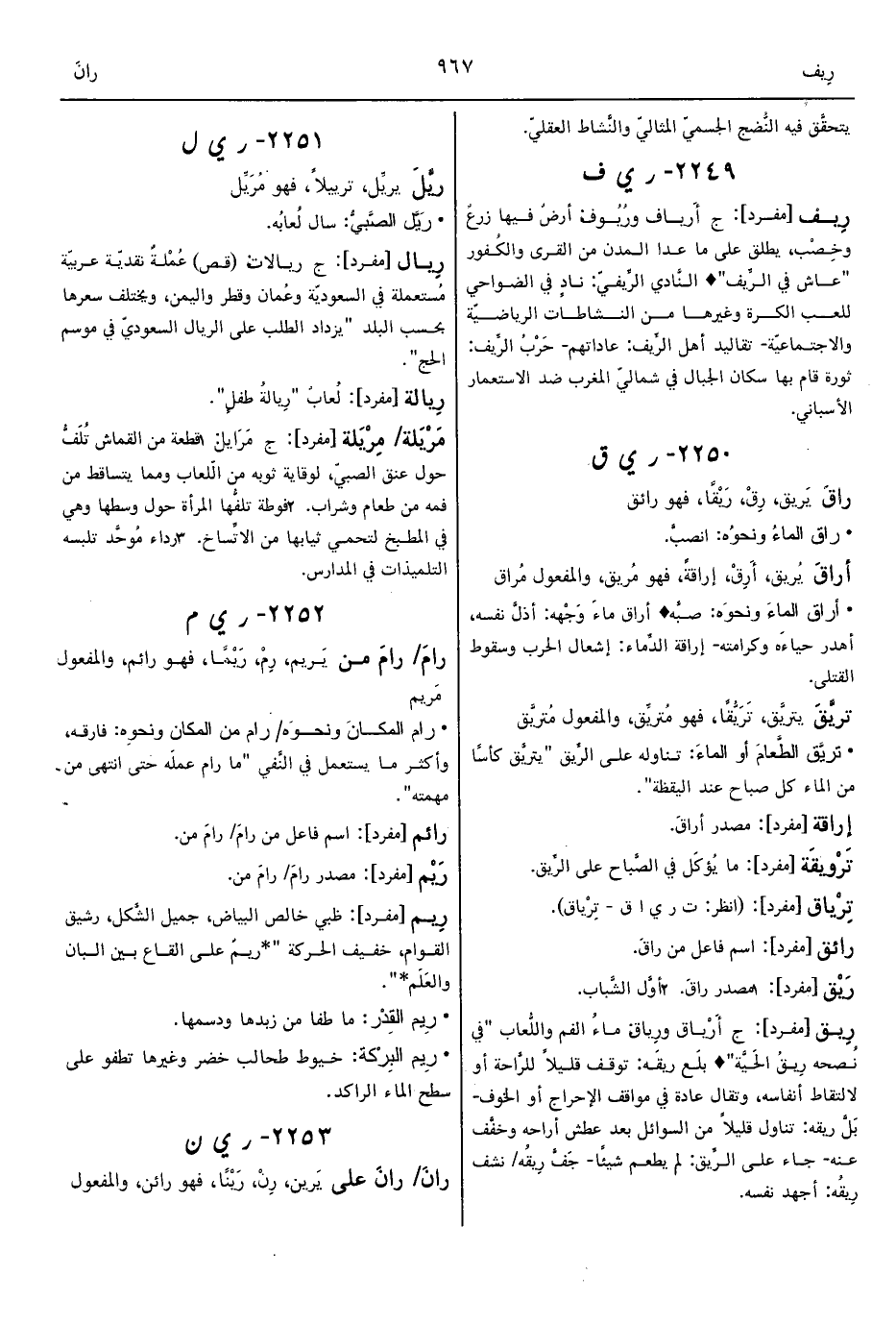 • رام المكانَ ونحوَه/ رام من المكان ونحوِه: فارقه، وأكثر ما يستعمل في النَّفي "ما رام عملَه حتى انتهى من مهمته".