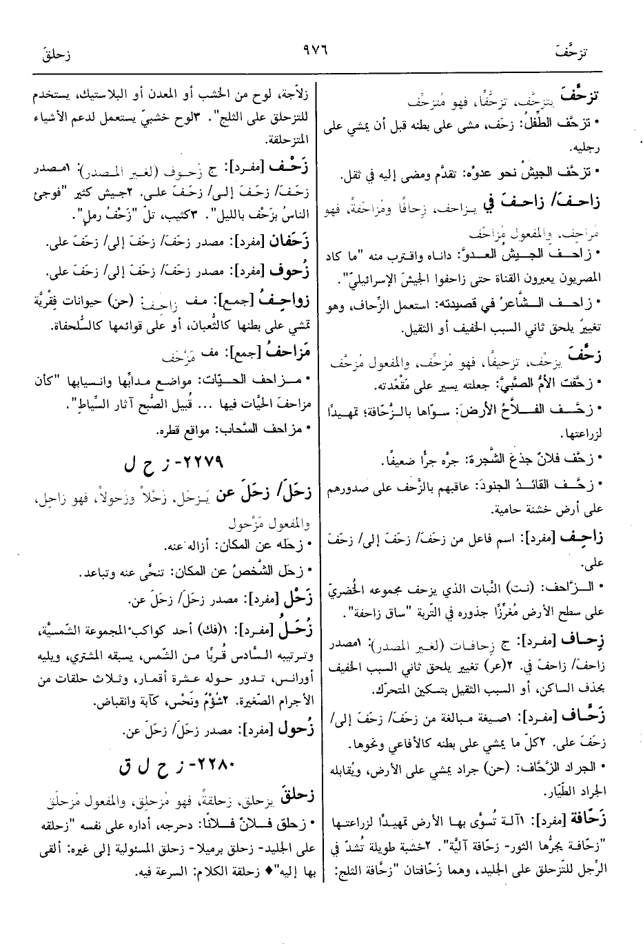 • تزحَّف الطِّفلُ: زحَف، مشى على بطنه قبل أن يمشي على رجليه.