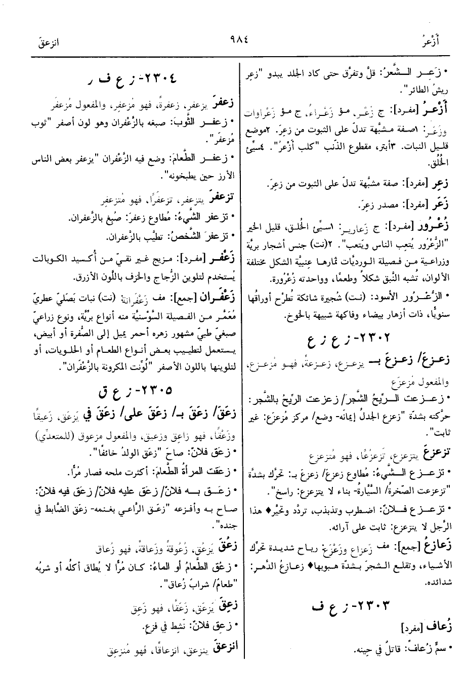 • زعفر الطَّعامَ: وضع فيه الزَّعْفران "يزعفر بعض الناس الأرز حين يطبخونه".