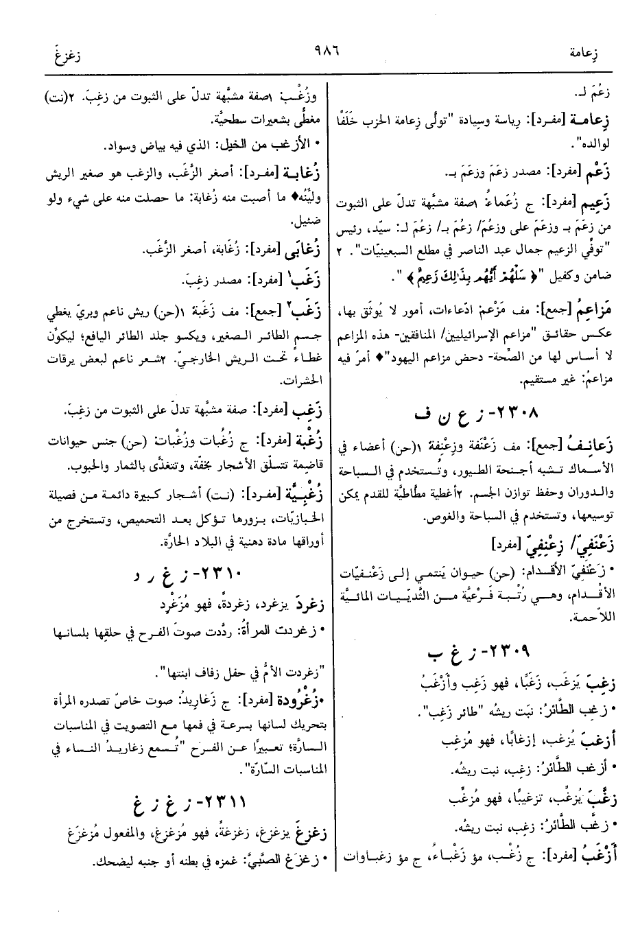 1 - صفة مشبَّهة تدلّ على الثبوت من زعَمَ بـ وزعَمَ على وزعُمَ/ زعُمَ بـ/ زعُمَ لـ: سيّد، رئيس "توفِّي الزعيم جمال عبد الناصر في مطلع السبعينيّات".