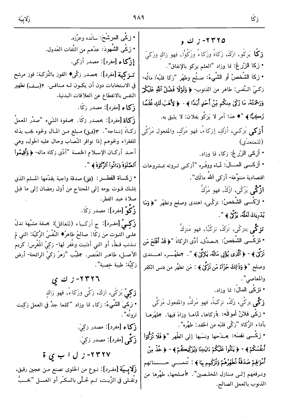 1 - صفة مشبَّهة تدلّ على الثبوت من زكَا: صالحٌ طاهرٌ ° النَّفْسُ الزَّكيّة: التي لم تذنب قطّ، أو التي أذنبت وغُفر لها- زكِيّ المَغْرِس: كريم الأصل، طاهر العُنصر.
