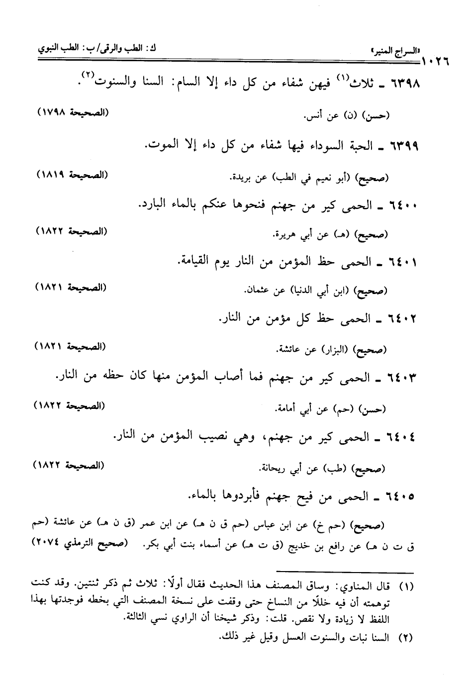6404 - الحمى كير من جهنم، وهي نصيب المؤمن من النار.