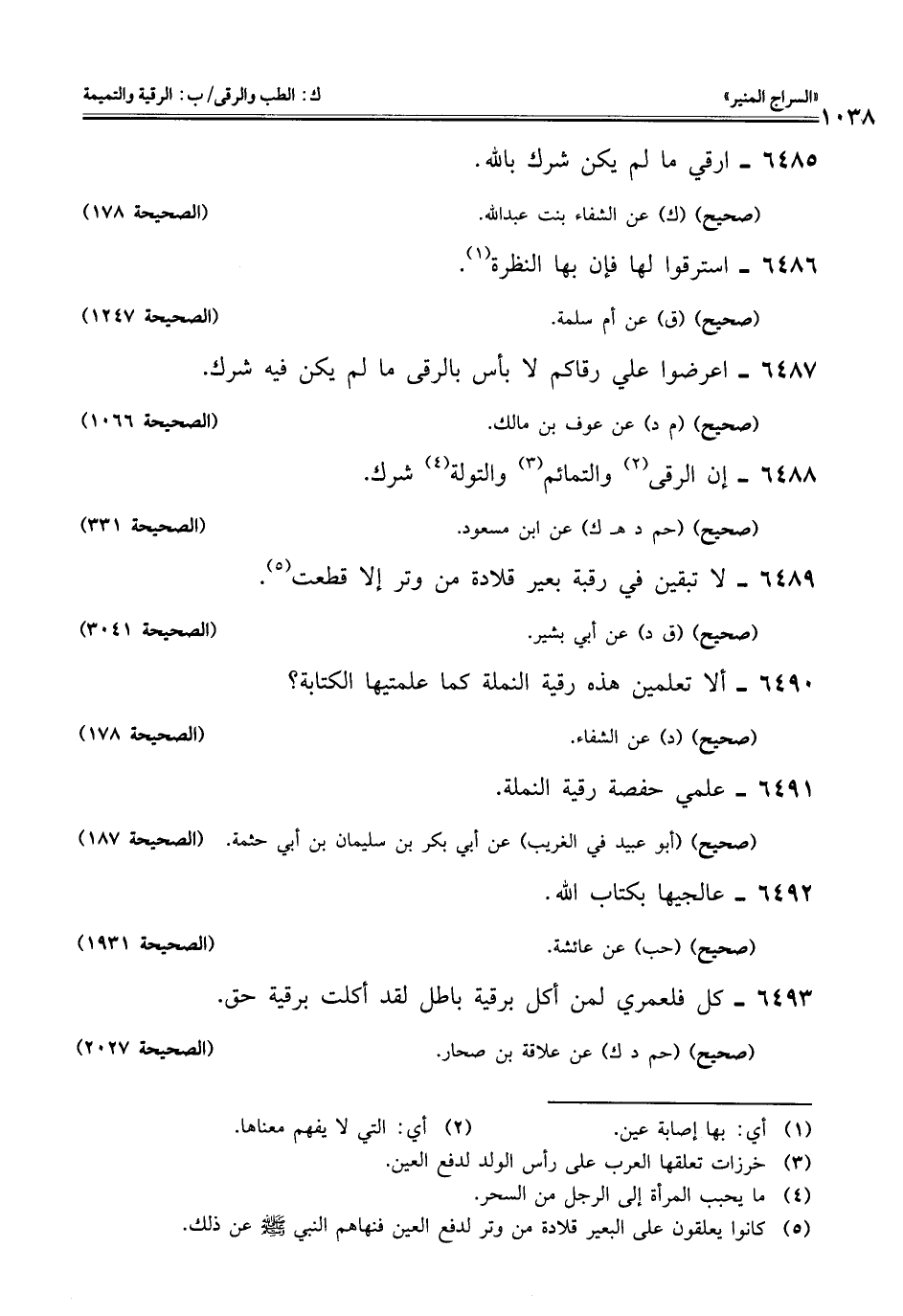 (¬5) كانوا يعلقون على البعير قلادة من وتر لدفع العين فنهاهم النبي -صلى اللَّه عليه وسلم- عن ذلك.
