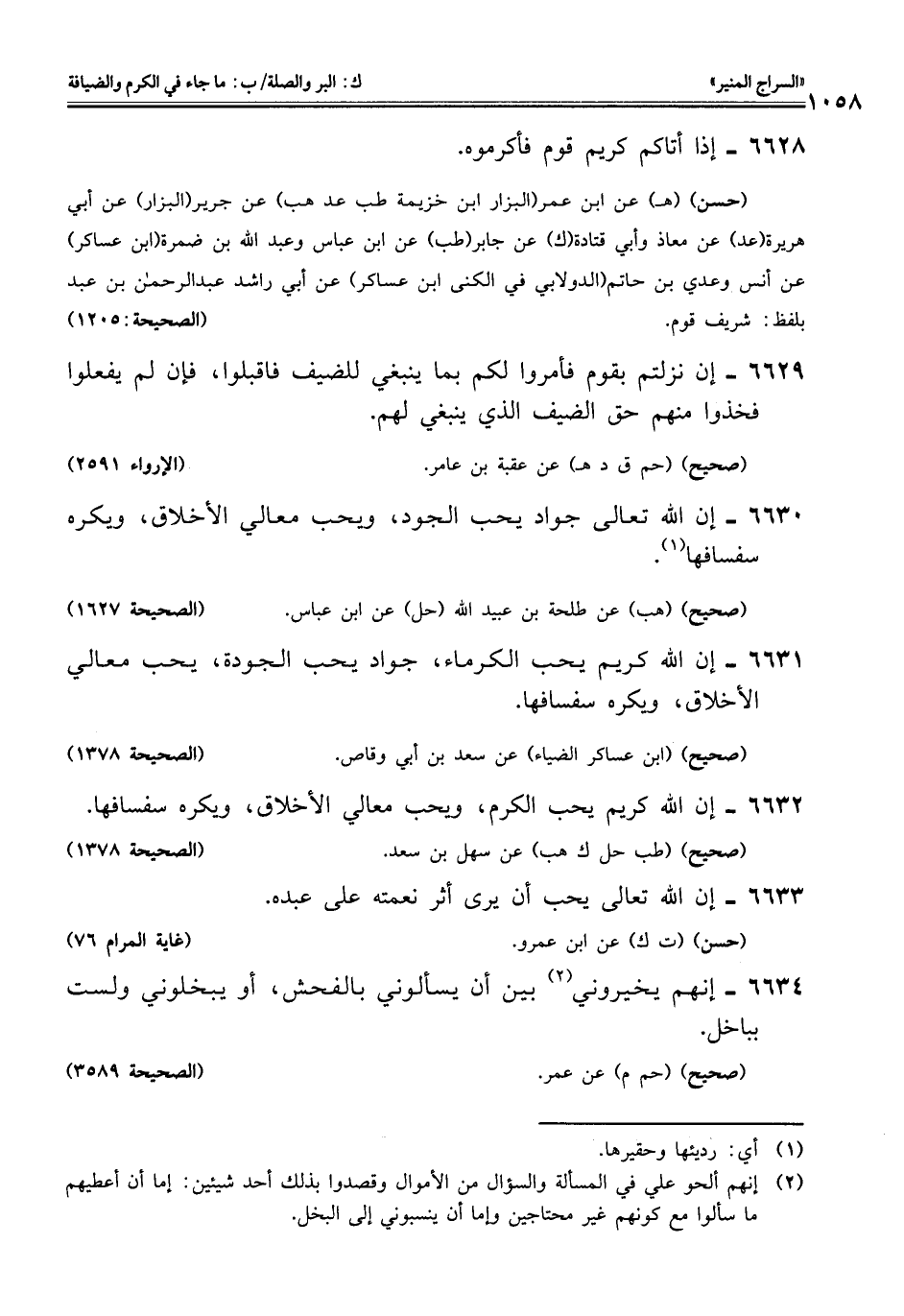 6628 - إذا أتاكم كريم قوم فأكرموه.