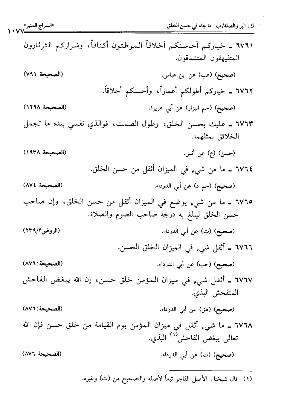 6767 - أثقل شيء في ميزان المؤمن خلق حسن، إن اللَّه يبغض الفاحش المتفحش البذي.