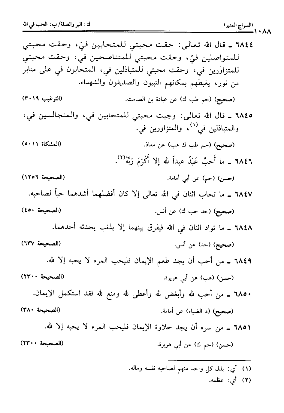 6846 - ما أَحبَّ عَبْدٌ عبدًا للَّه إلا أَكْرَمَ رَبَّهُ (¬2).