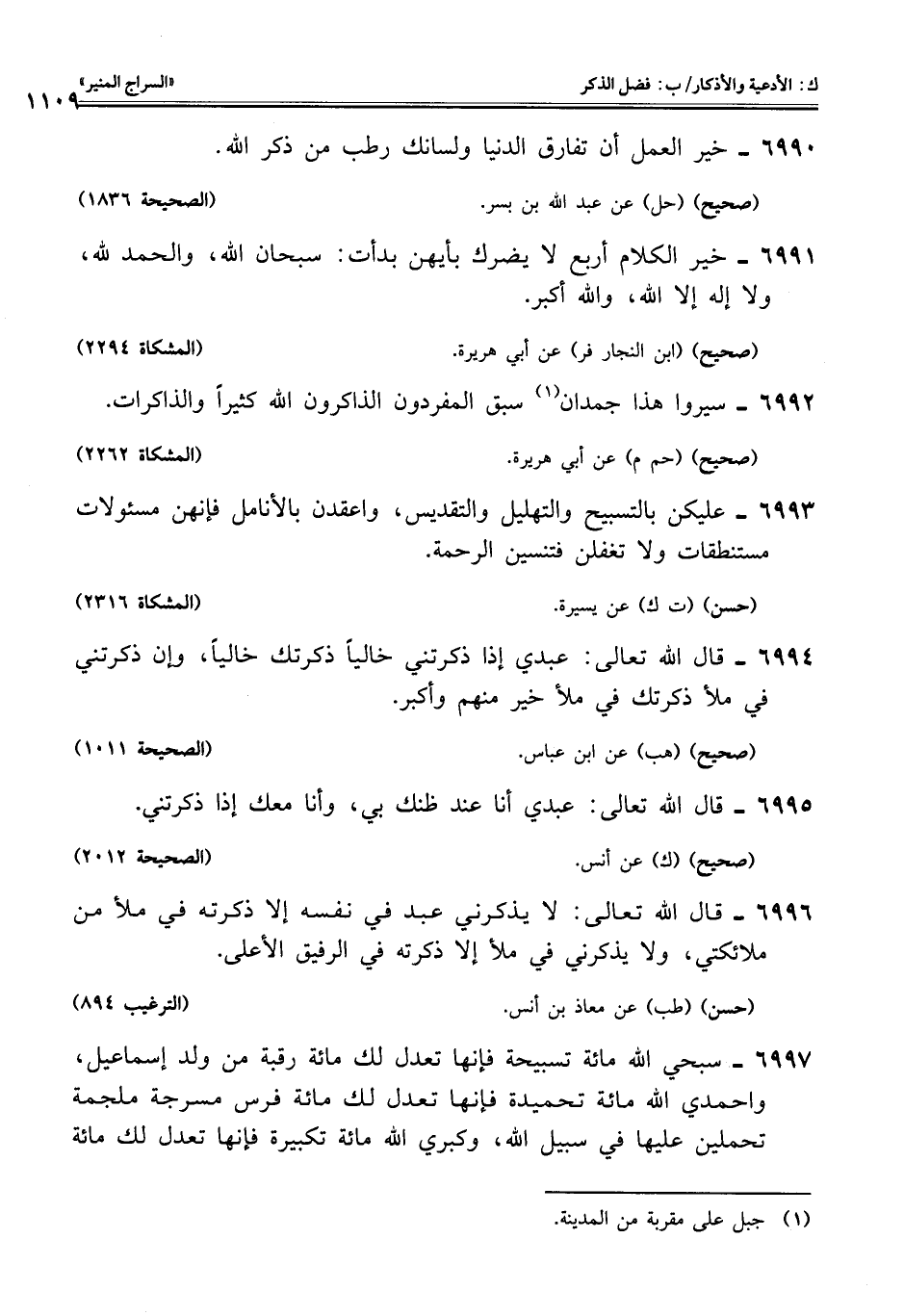 6992 - سيروا هذا جمدان (¬1) سبق المفردون الذاكرون اللَّه كثيرًا والذاكرات.