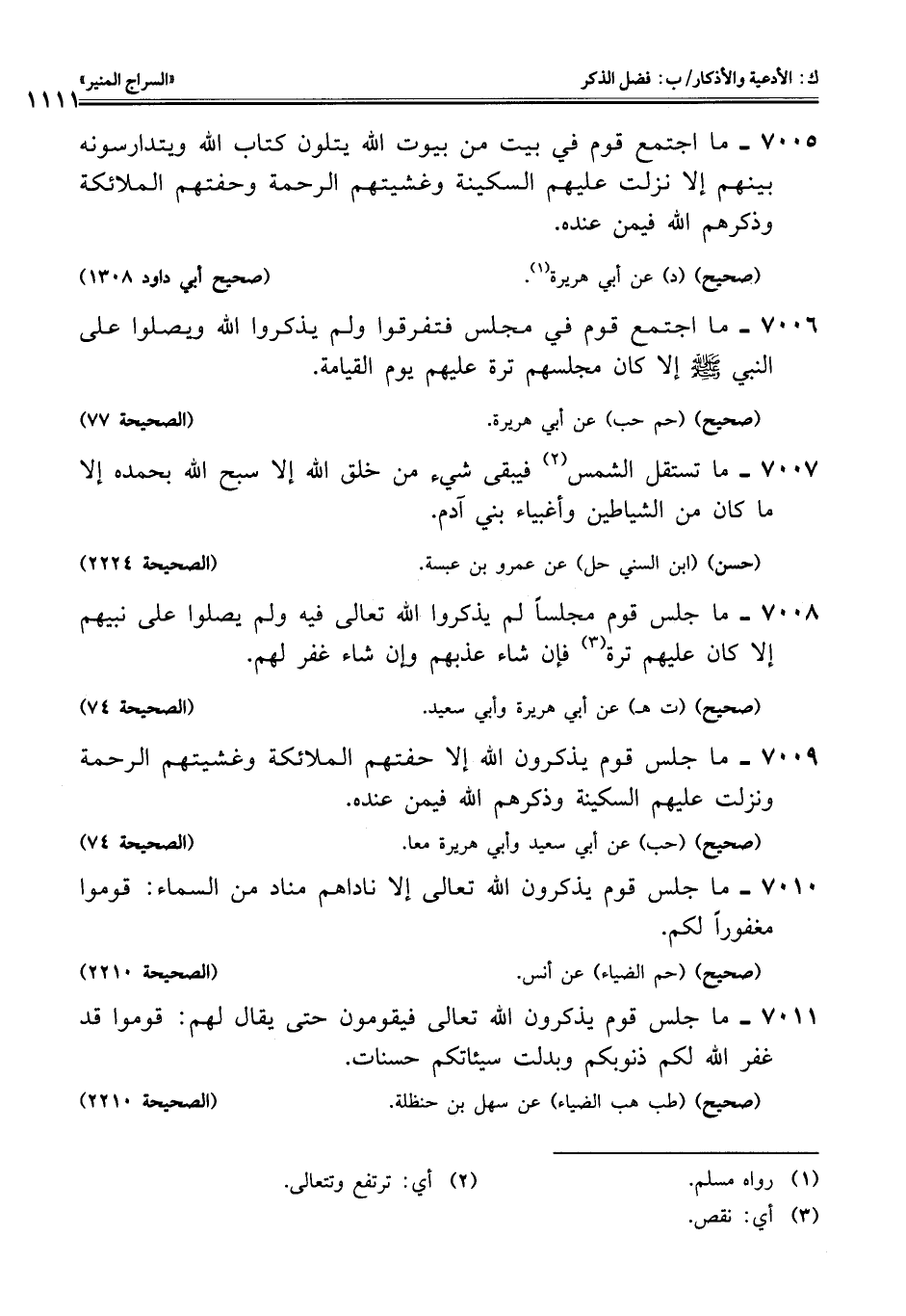 7009 - ما جلس قوم يذكرون اللَّه إلا حفتهم الملائكة وغشيتهم الرحمة ونزلت عليهم السكينة وذكرهم اللَّه فيمن عنده.