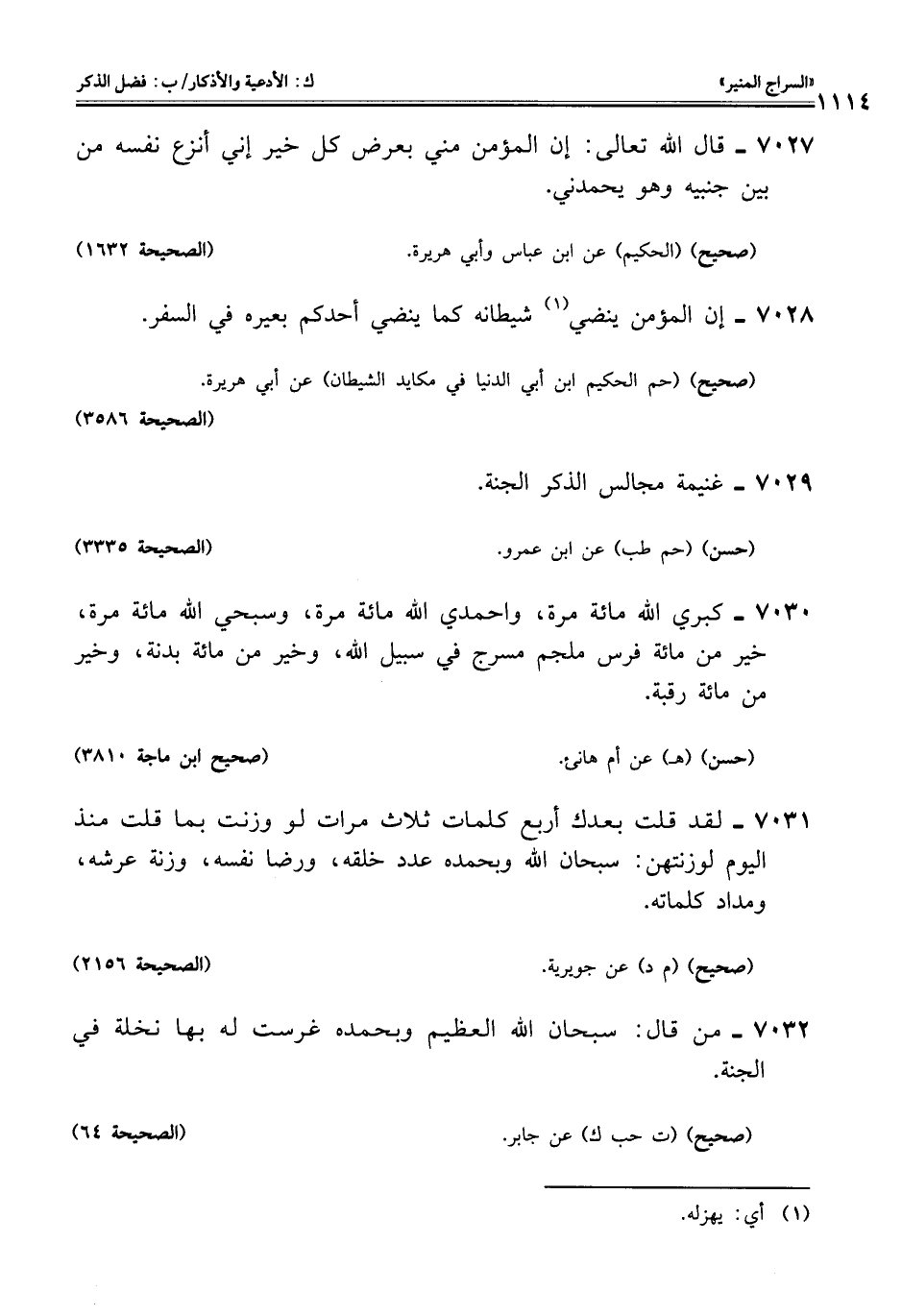كتاب السراج المنير في ترتيب أحاديث صحيح الجامع الصغير (اسم الجزء: 2)
