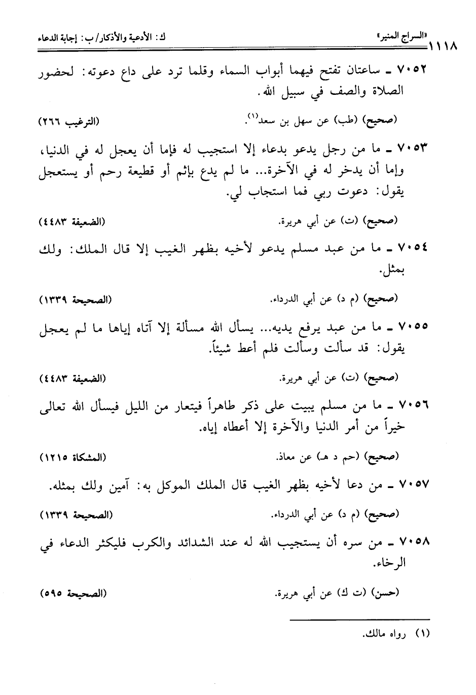 7053 - ما من رجل يدعو بدعاء إلا استجيب له فإما أن يعجل له في الدنيا، وإما أن يدخر له في الآخرة. . . ما لم يدع بإثم أو قطيعة رحم أو يستعجل يقول: دعوت ربي فما استجاب لي.