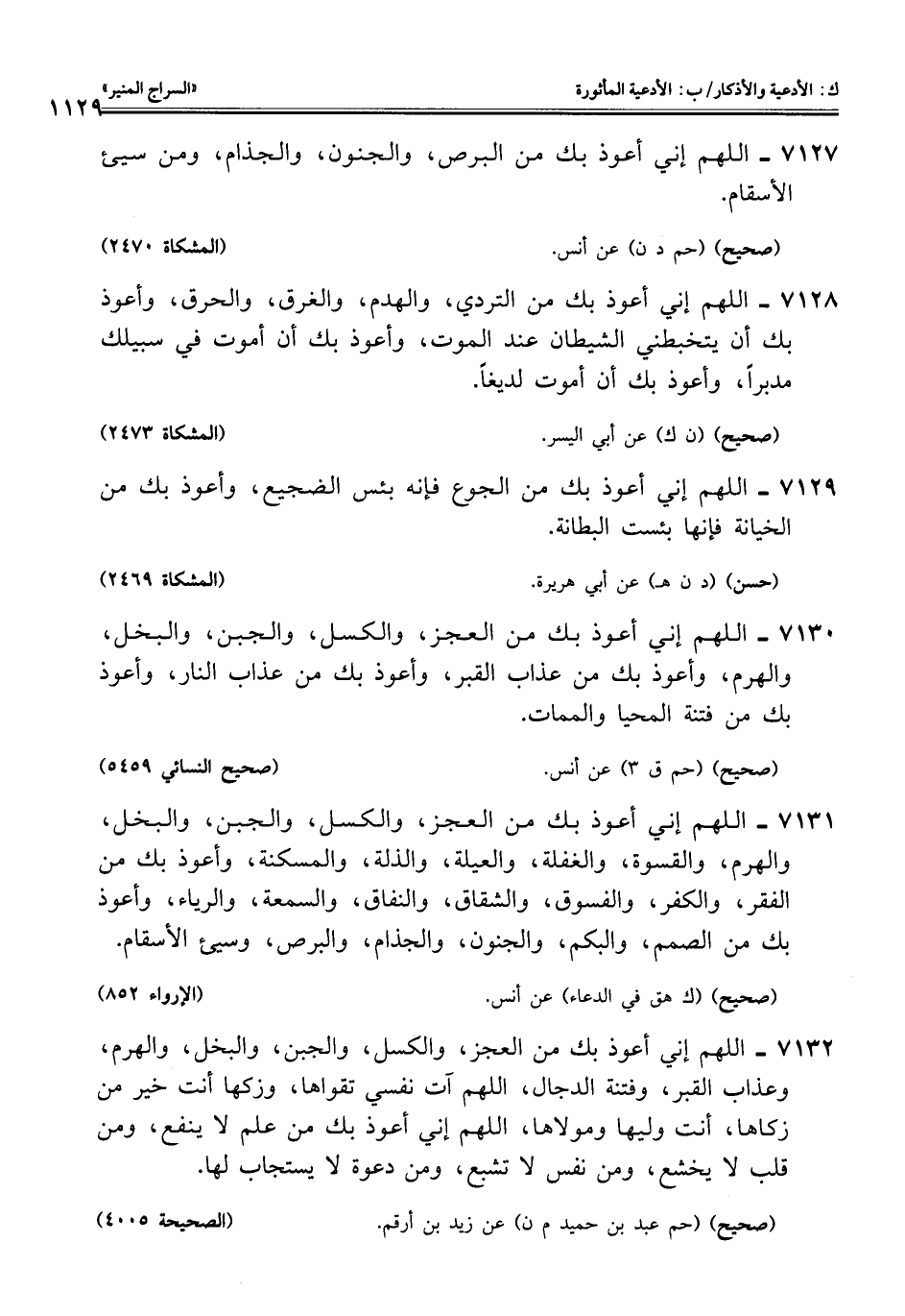7127 - اللهم إني أعوذ بك من البرص، والجنون، والجذام، ومن سيئ الأسقام.