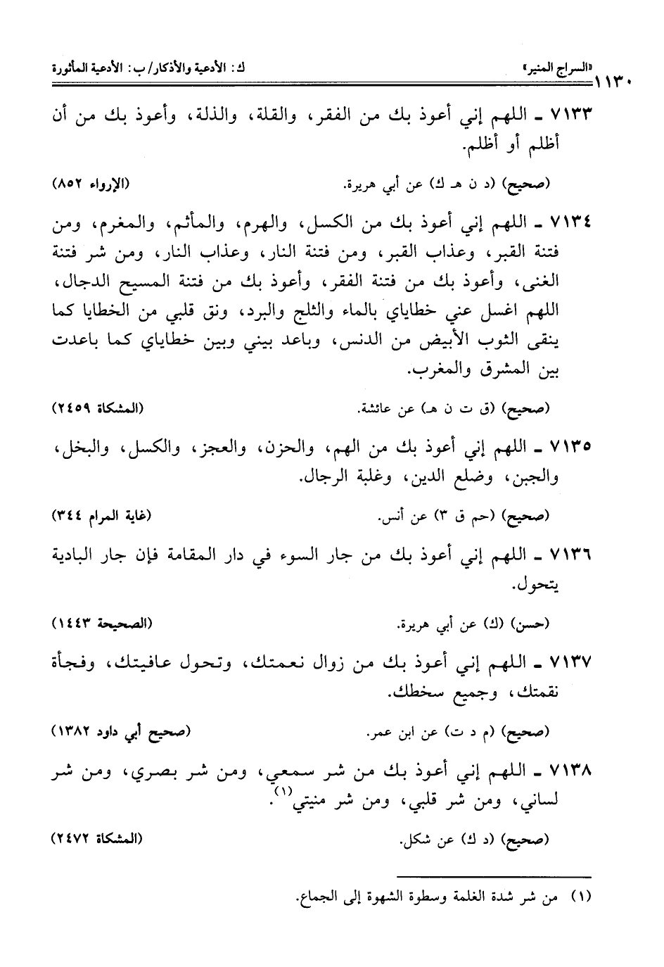 7134 - اللهم إني أعوذ بك من الكسل، والهرم، والمأثم، والمغرم، ومن فتنة القبر، وعذاب القبر، ومن فتنة النار، وعذاب النار، ومن شر فتنة الغنى، وأعوذ بك من فتنة الفقر، وأعوذ بك من فتنة المسيح الدجال، اللهم اغسل عني خطاياي بالماء والثلج والبرد، ونق قلبي من الخطايا كما ينقى الثوب الأبيض من الدنس، وباعد بيني وبين خطاياي كما باعدت بين المشرق والمغرب.