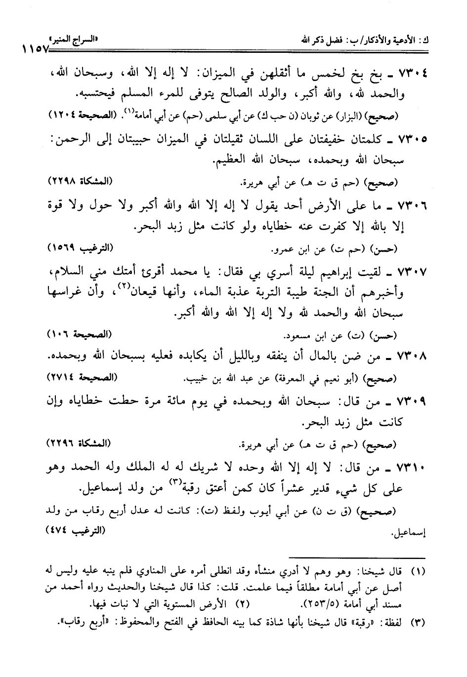 7305 - كلمتان خفيفتان على اللسان ثقيلتان في الميزان حبيبتان إلى الرحمن: سبحان اللَّه وبحمده، سبحان اللَّه العظيم.