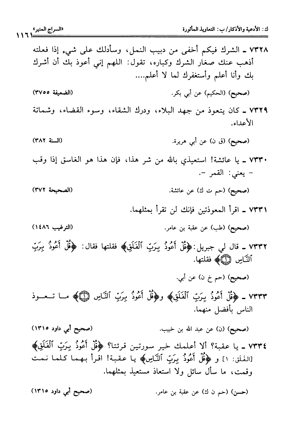 7333 - {قُلْ أَعُوذُ بِرَبِّ الْفَلَقِ} و {قُلْ أَعُوذُ بِرَبِّ النَّاسِ} ما تعوذ الناس بأفضل منهما.