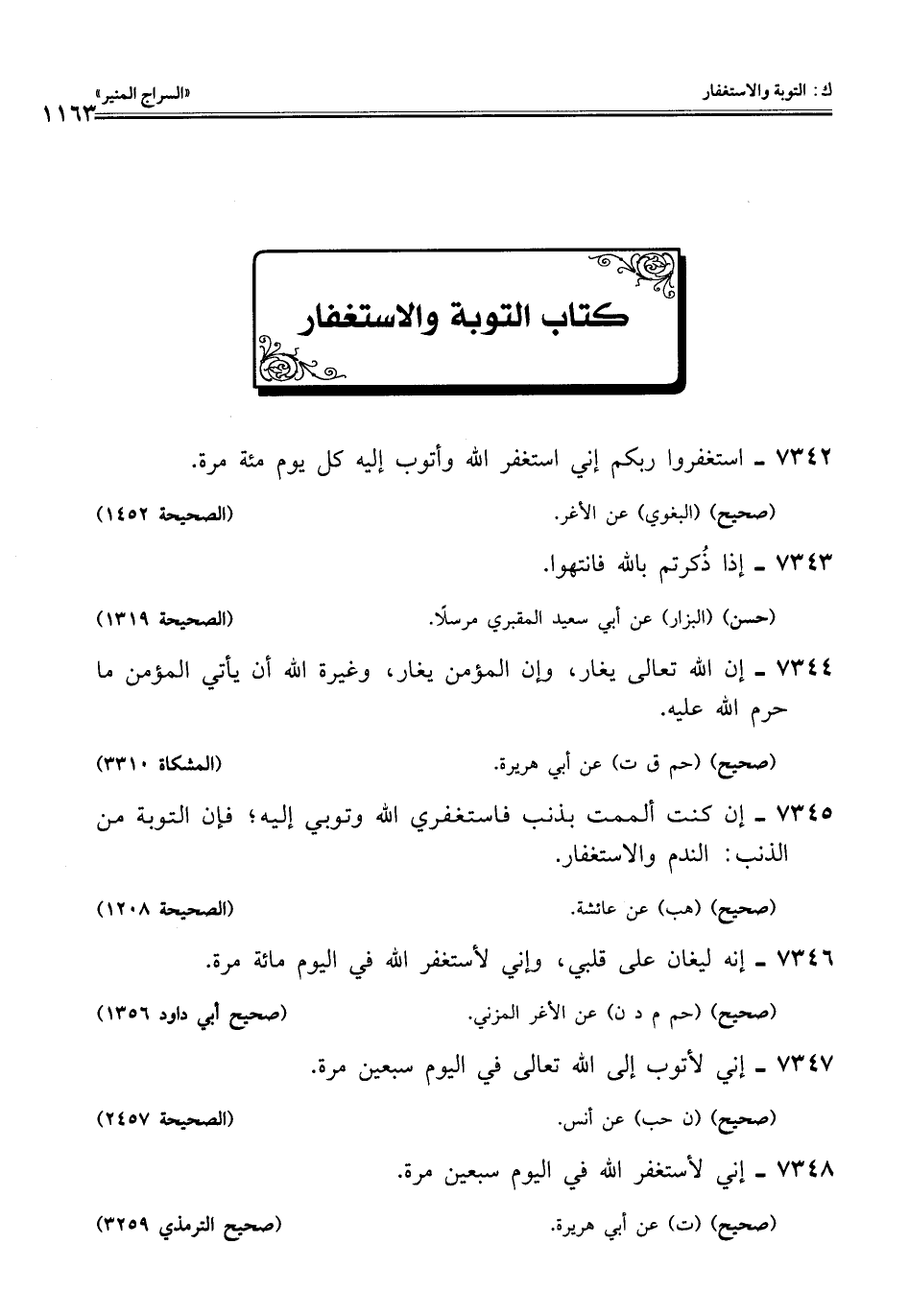 7342 - استغفروا ربكم إني استغفر اللَّه وأتوب إليه كل يوم مئة مرة.
