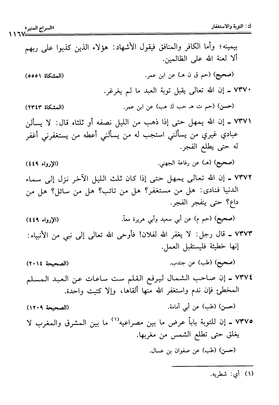 7375 - إن للتوبة بابًا عرض ما بين مصراعيه (¬1) ما بين المشرق والمغرب لا يغلق حتى تطلع الشمس من مغربها.