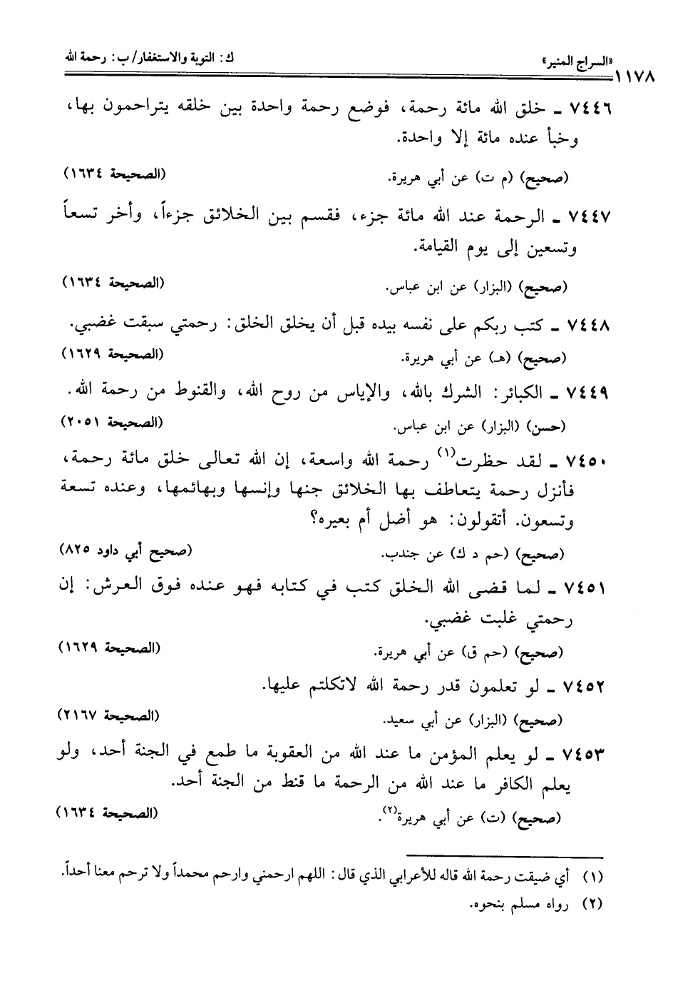 7452 - لو تعلمون قدر رحمة اللَّه لاتكلتم عليها.