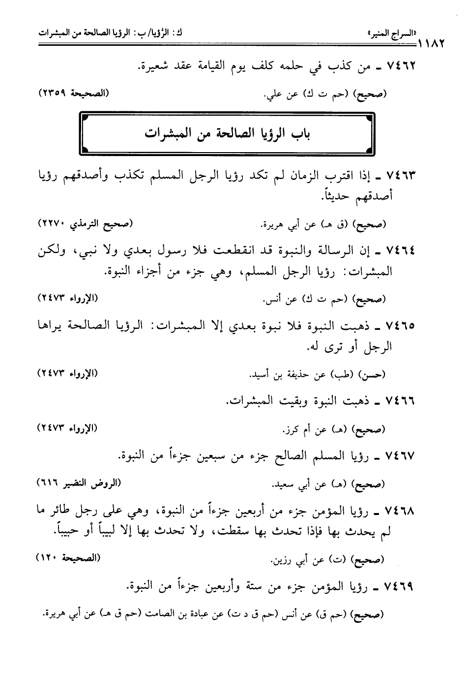 7469 - رؤيا المؤمن جزء من ستة وأربعين جزءًا من النبوة.