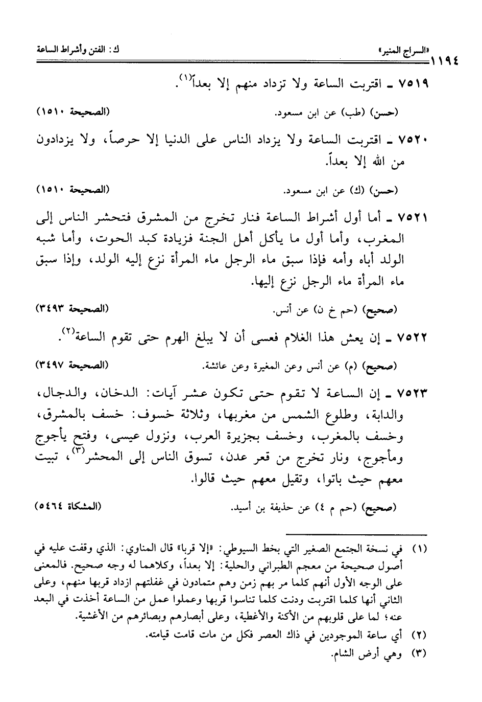 7519 - اقتربت الساعة ولا تزداد منهم إلا بعدًا (¬1).