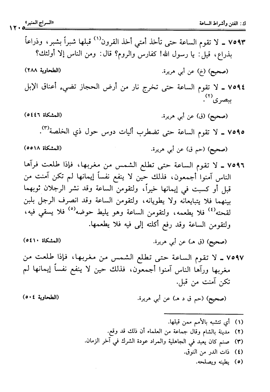 7594 - لا تقوم الساعة حتى تخرج نار من أرض الحجاز تضيء أعناق الإبل ببصرى (¬2).