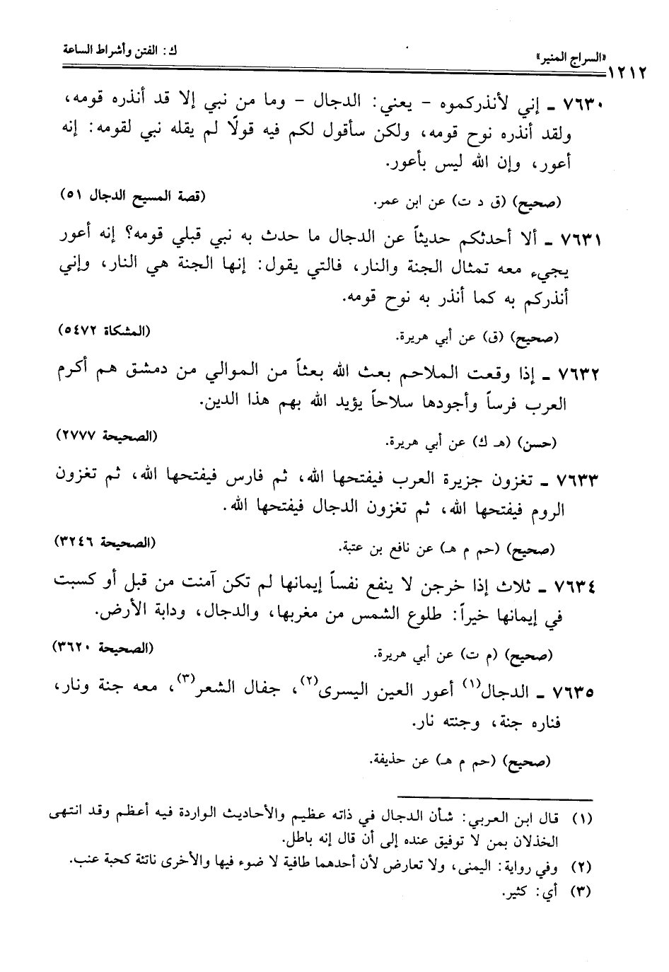 (¬1) قال ابن العربي: شأن الدجال في ذاته عظيم والأحاديث الواردة فيه أعظم وقد انتهى الخذلان بمن لا توفيق عنده إلى أن قال إنه باطل.
