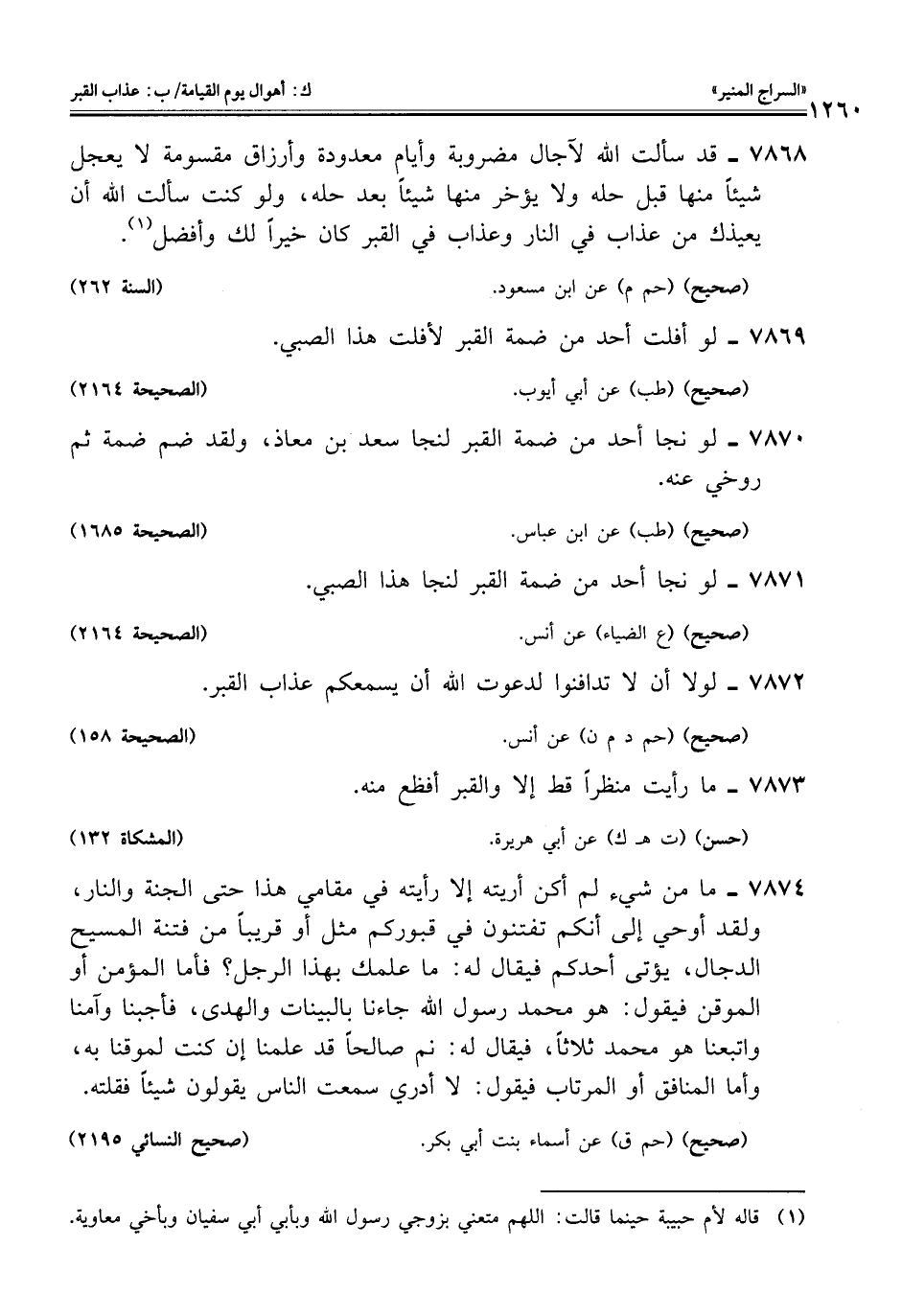 7869 - لو أفلت أحد من ضمة القبر لأفلت هذا الصبي.
