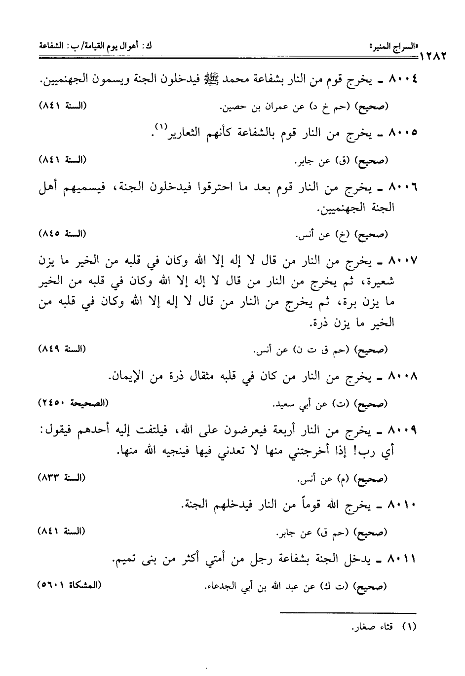 8005 - يخرج من النار قوم بالشفاعة كأنهم الثعارير (¬1).