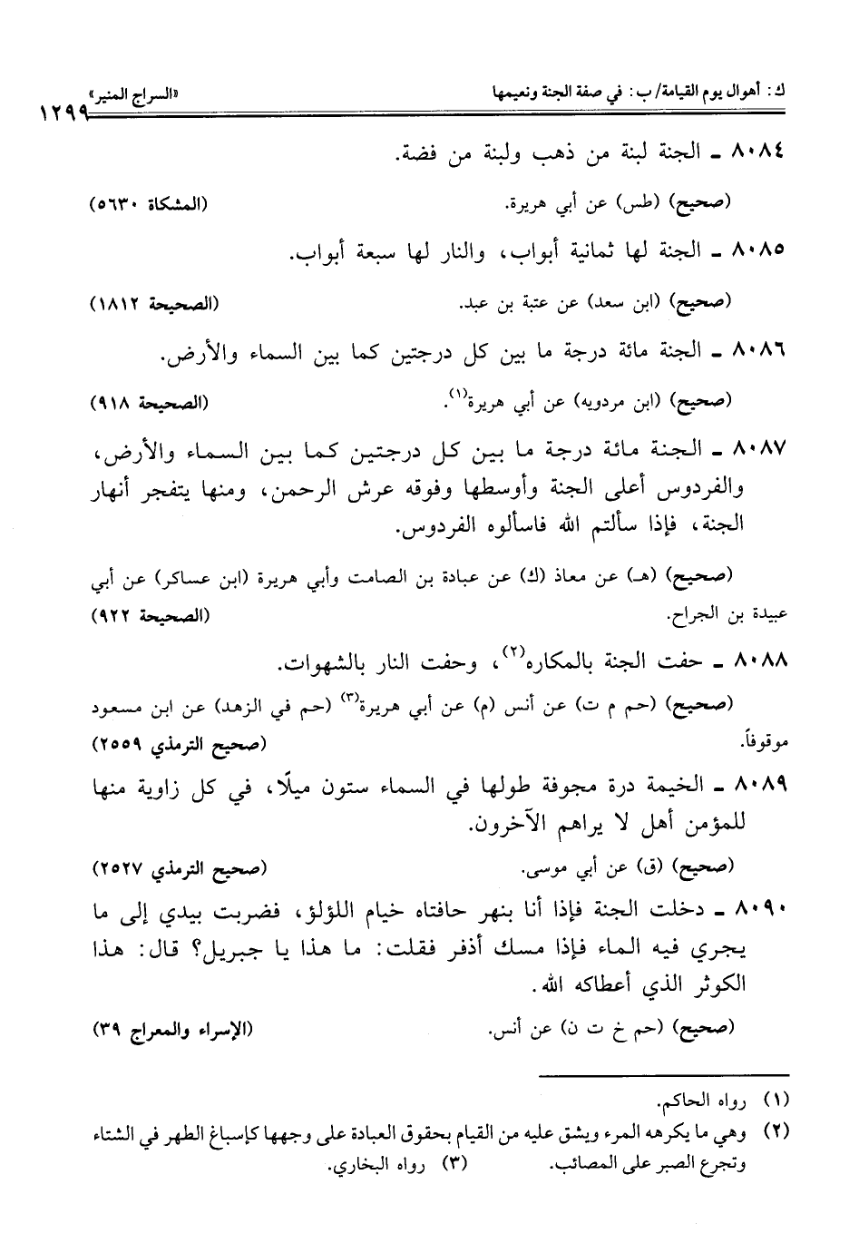 8086 - الجنة مائة درجة ما بين كل درجتين كما بين السماء والأرض.