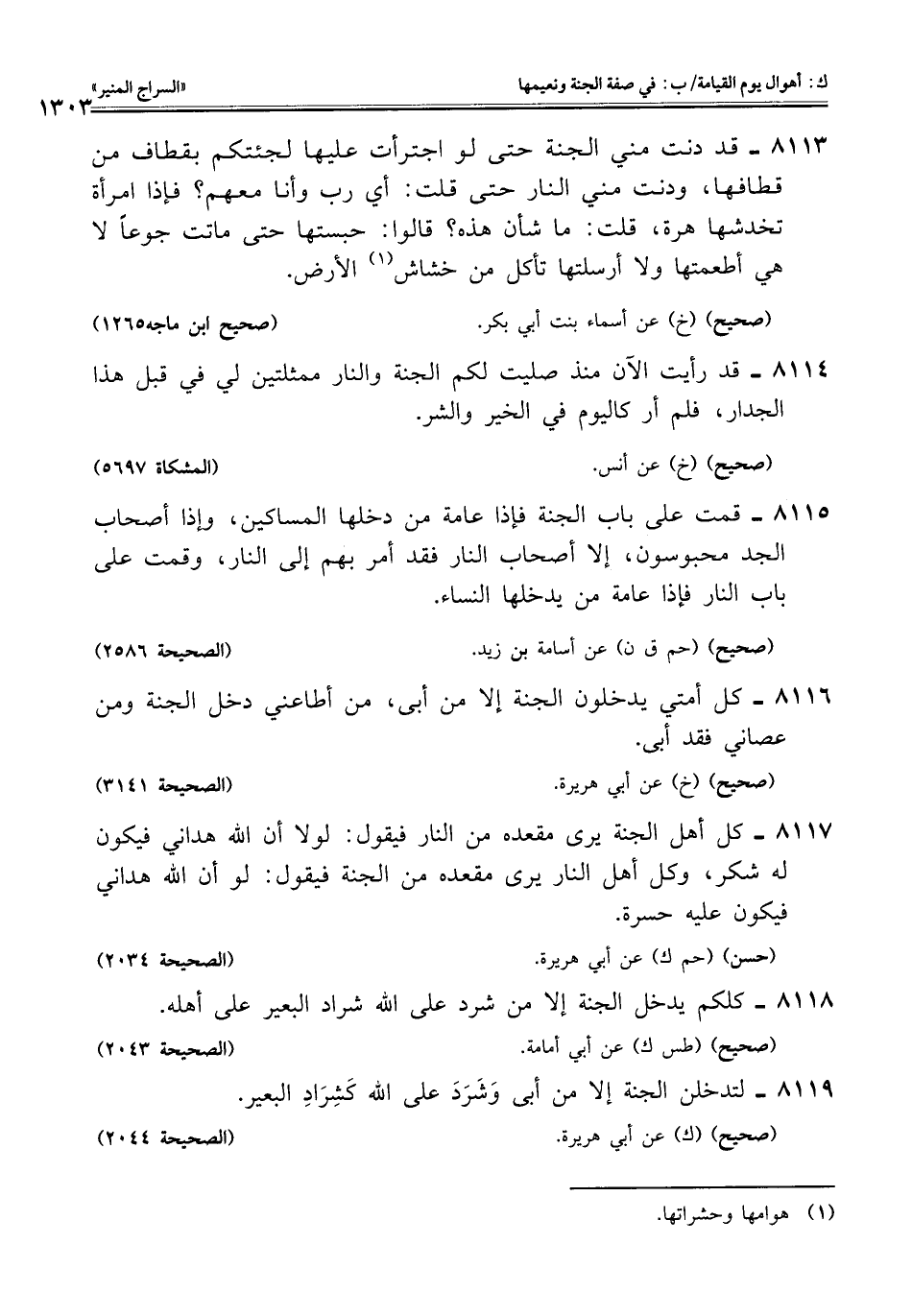 8117 - كل أهل الجنة يرى مقعده من النار فيقول: لولا أن اللَّه هداني فيكون له شكر، وكل أهل النار يرى مقعده من الجنة فيقول: لو أن اللَّه هداني فيكون عليه حسرة.
