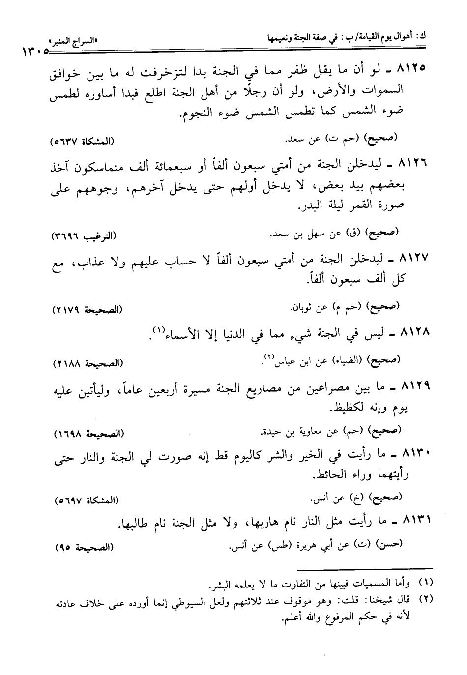 (¬2) قال شيخنا: قلت: وهو موقوف عند ثلاثتهم ولعل السيوطي إنما أورده على خلاف عادته لأنه في حكم المرفوع واللَّه أعلم.
