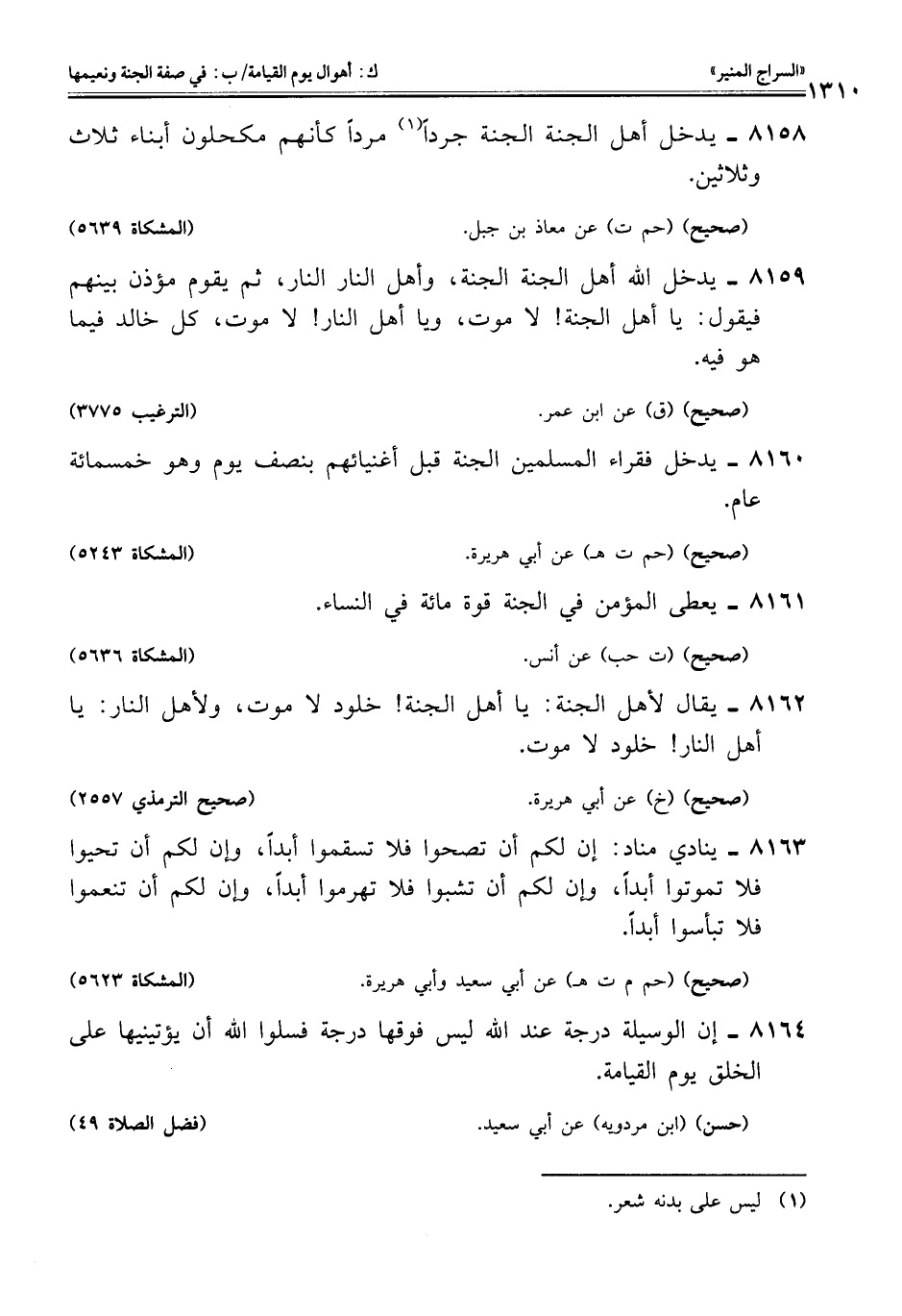 8158 - يدخل أهل الجنة الجنة جردًا (¬1) مردًا كأنهم مكحلون أبناء ثلاث وثلاثين.