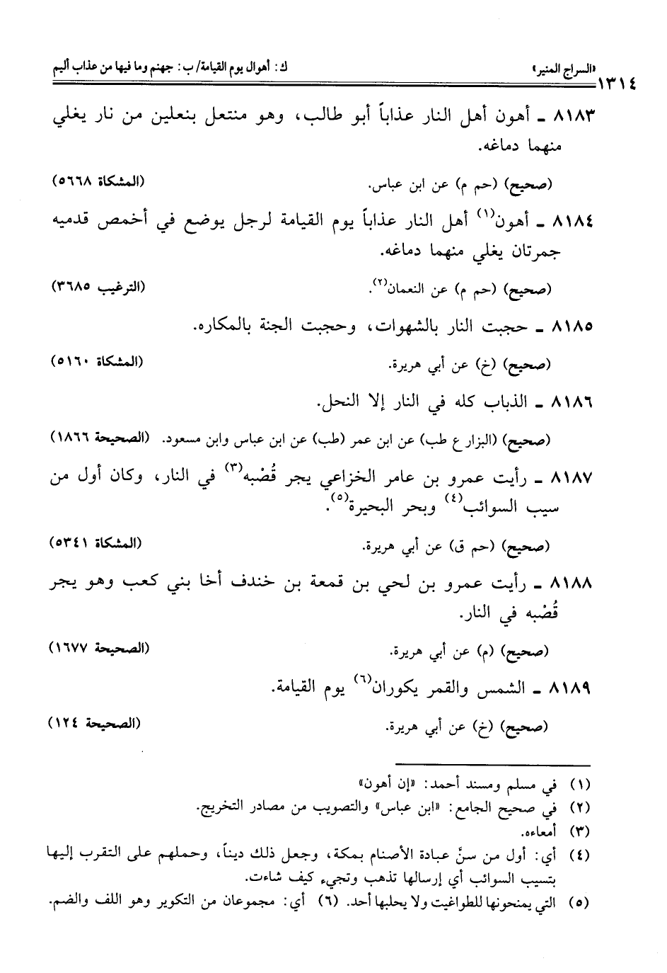 8184 - أهون (¬1) أهل النار عذابًا يوم القيامة لرجل يوضع في أخمص قدميه جمرتان يغلي منهما دماغه.