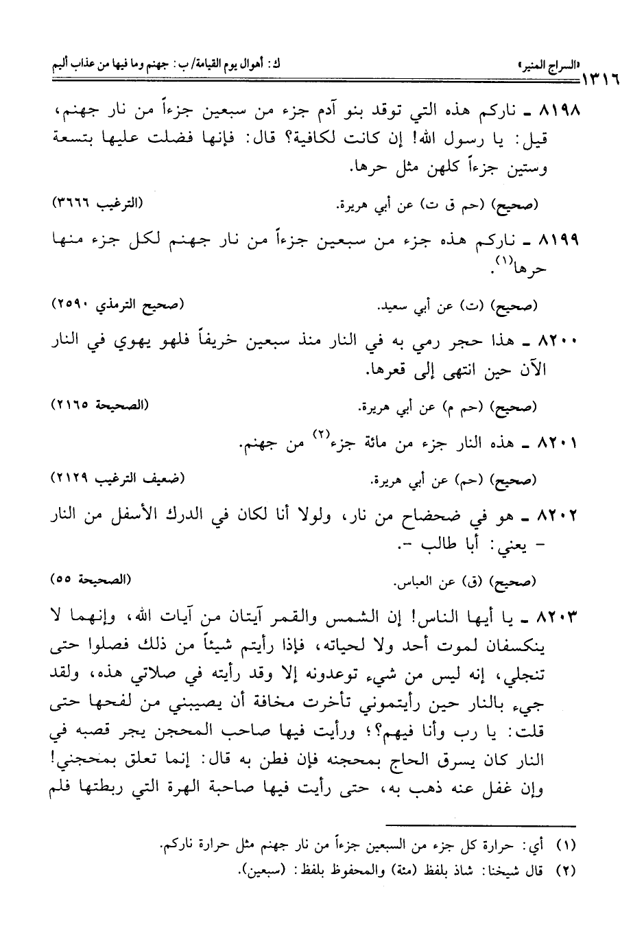 8199 - ناركم هذه جزء من سبعين جزءًا من نار جهنم لكل جزء منها حرها (¬1).