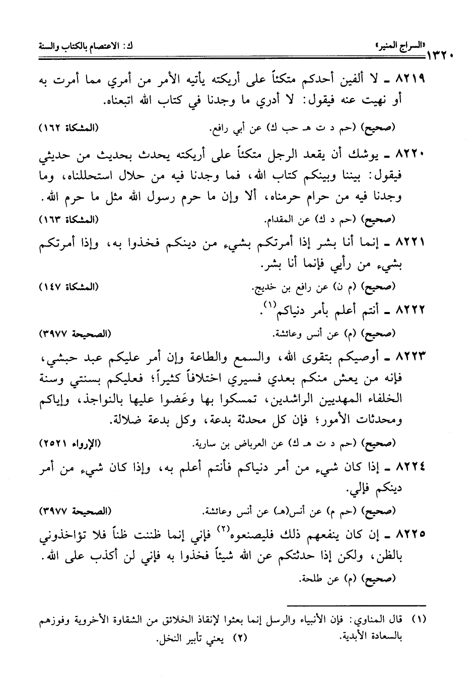8221 - إنما أنا بشر إذا أمرتكم بشيء من دينكم فخذوا به، وإذا أمرتكم بشيء من رأيي فإنما أنا بشر.