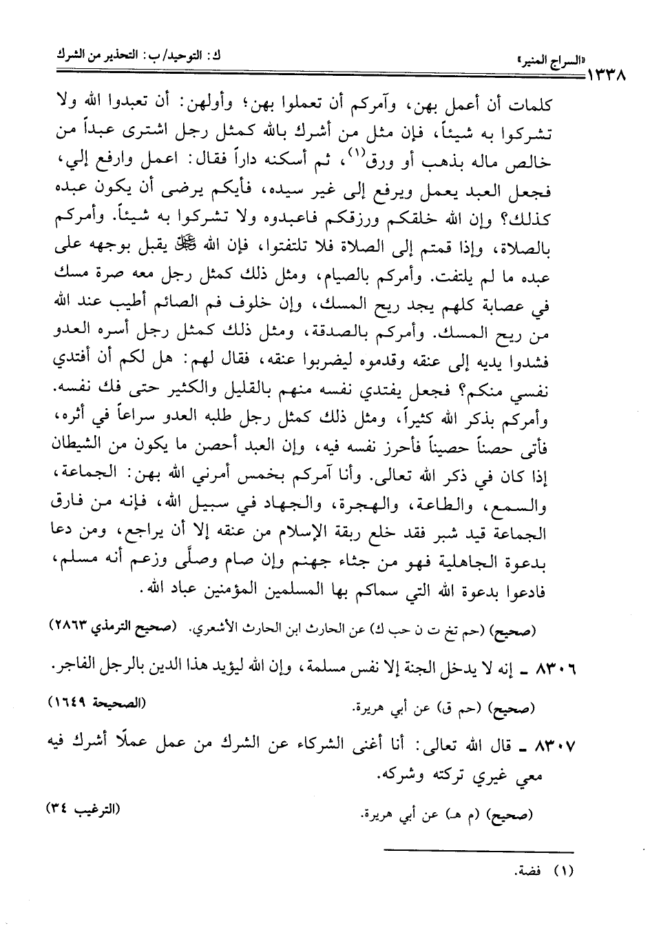كتاب السراج المنير في ترتيب أحاديث صحيح الجامع الصغير (اسم الجزء: 2)