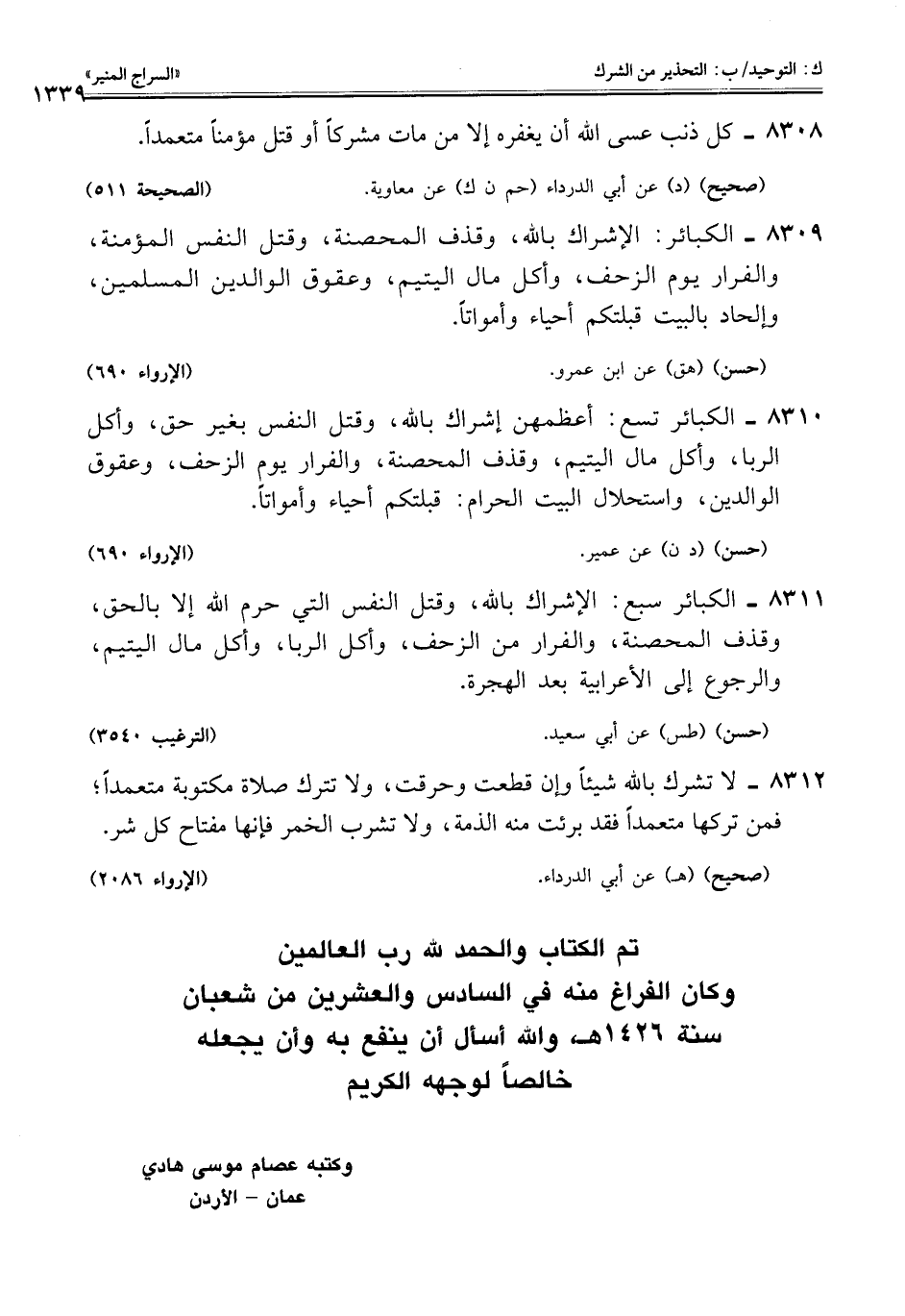 تم الكتاب والحمد للَّه رب العالمين
