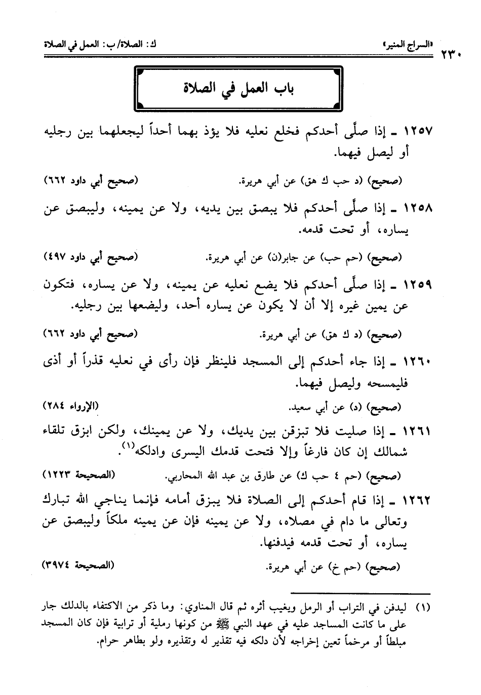 1260 - إذا جاء أحدكم إلى المسجد فلينظر فإن رأى في نعليه قذرًا أو أذى فليمسحه وليصل فيهما.