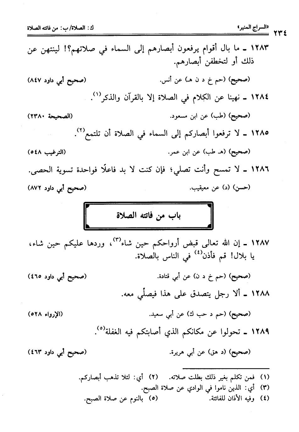 1285 - لا ترفعوا أبصاركم إلى السماء في الصلاة أن تلتمع (¬2).