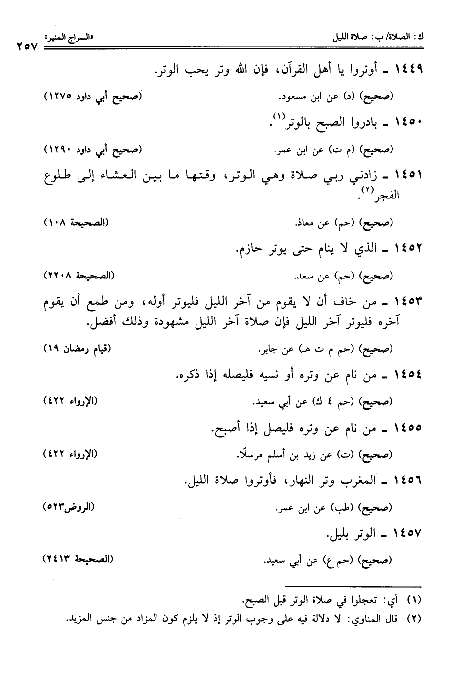 (¬2) قال المناوي: لا دلالة فيه على وجوب الوتر إذ لا يلزم كون المزاد من جنس المزيد.