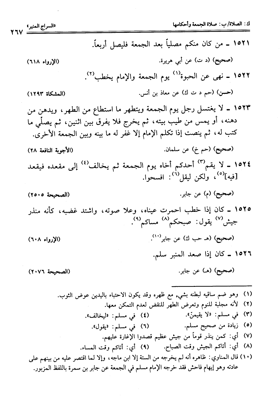 (¬10) قال المناوي: ظاهره أنه لم يخرجه من الستة الا ابن ماجه، وإلا لما اقتصر عليه من بينهم على عادته وهو إيهام فاحش فقد خرجه الإمام مسلم في الجمعة عن جابر بن سمرة باللفظ المزبور.