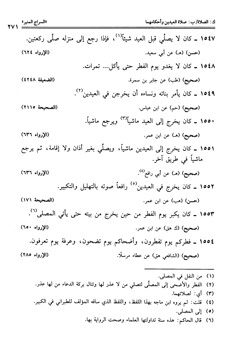 1549 - كان يأمر بناته ونساءه أن يخرجن في العيدين (¬2).