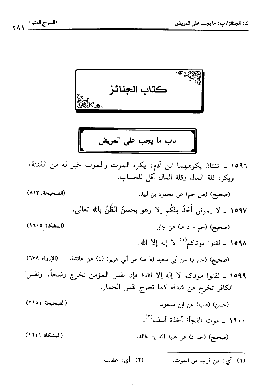 كتاب السراج المنير في ترتيب أحاديث صحيح الجامع الصغير (اسم الجزء: 1)