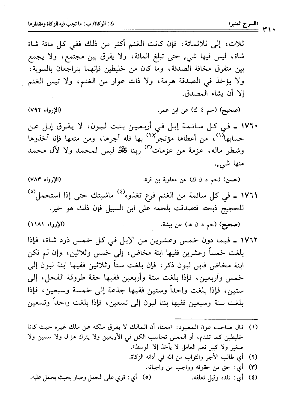 1760 - في كل سائمة إبل في أربعين بنت لبون، لا يفرق إبل عن حسابها (¬1)، من أعطاها مؤتجرًا (¬2) بها فله أجرها، ومن منعها فإنا آخذوها وشطر ماله، عزمة من عزمات (¬3) ربنا عز وجل ليس لمحمد ولا لآل محمد منها شيء.