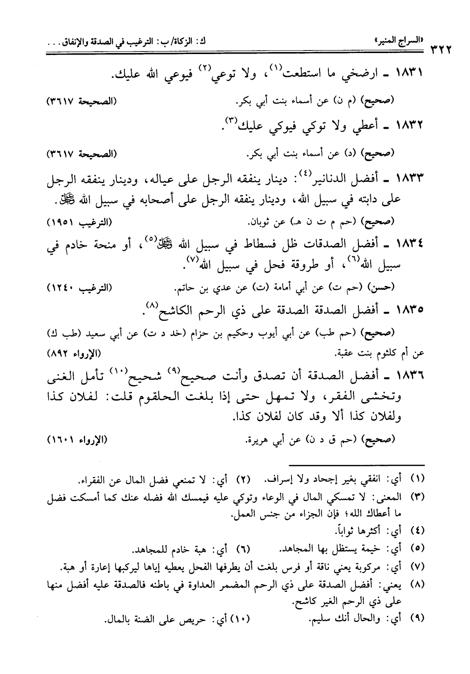 1835 - أفضل الصدقة الصدقة على ذي الرحم الكاشح (¬8).