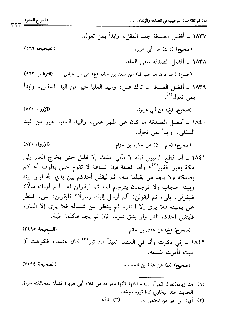 1840 - أفضل الصدقة ما كان عن ظهر غنى، واليد العليا خير من اليد السفلى، وابدأ بمن تعول.