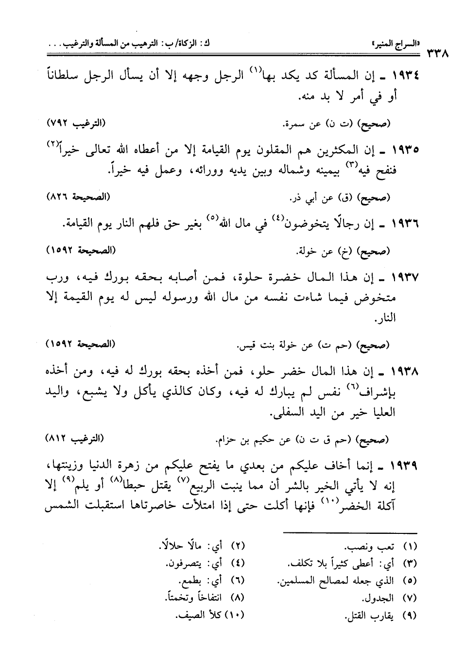 1938 - إن هذا المال خضر حلو، فمن أخذه بحقه بورك له فيه، ومن أخذه بإشراف (¬6) نفس لم يبارك له فيه، وكان كالذي يأكل ولا يشبع، واليد العليا خير من اليد السفلى.