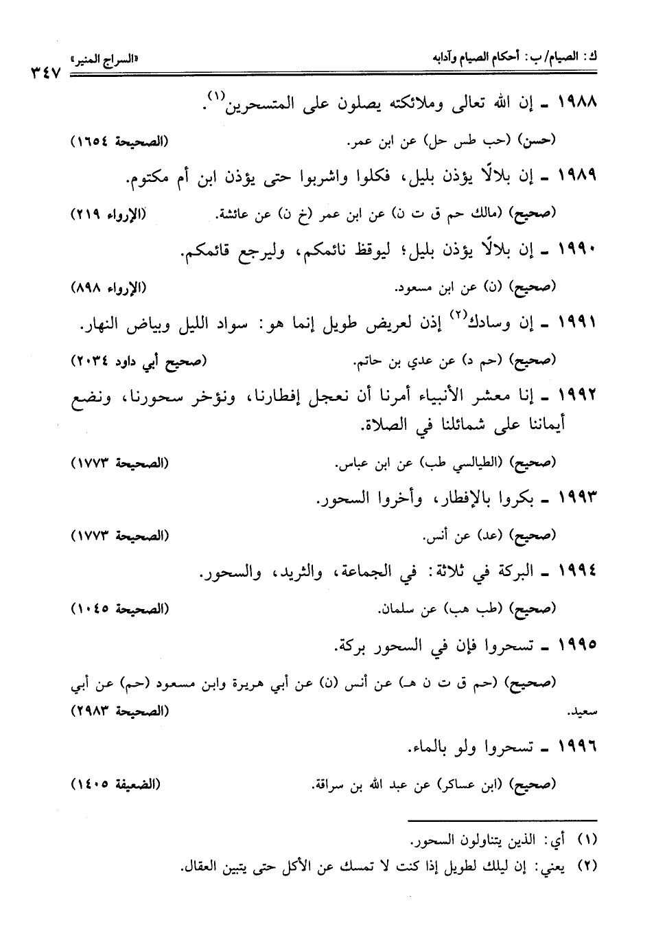 1994 - البركة في ثلاثة: في الجماعة، والثريد، والسحور.