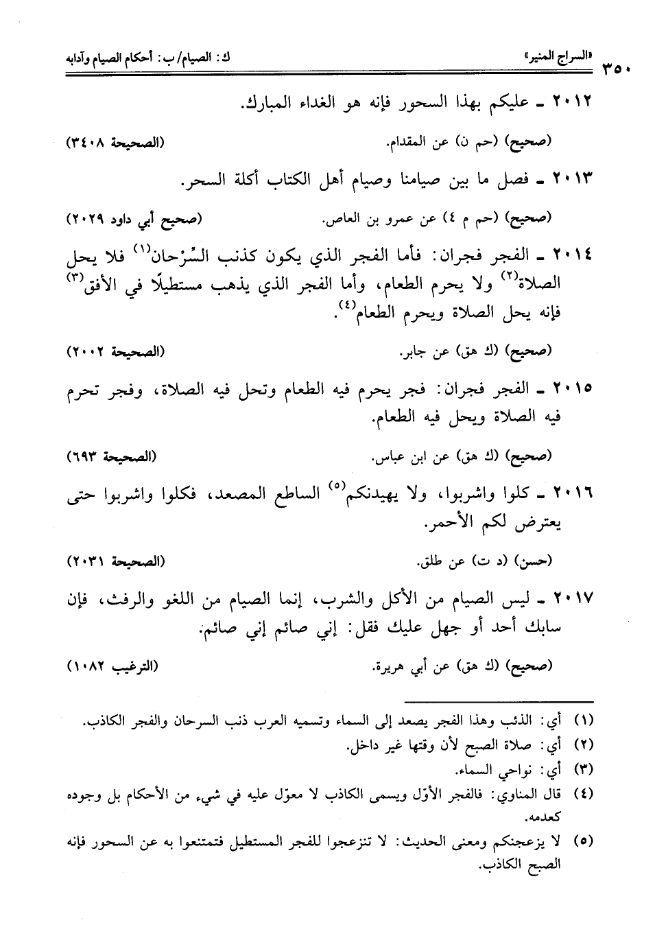 2016 - كلوا واشربوا، ولا يهيدنكم (¬5) الساطع المصعد، فكلوا واشربوا حتى يعترض لكم الأحمر.