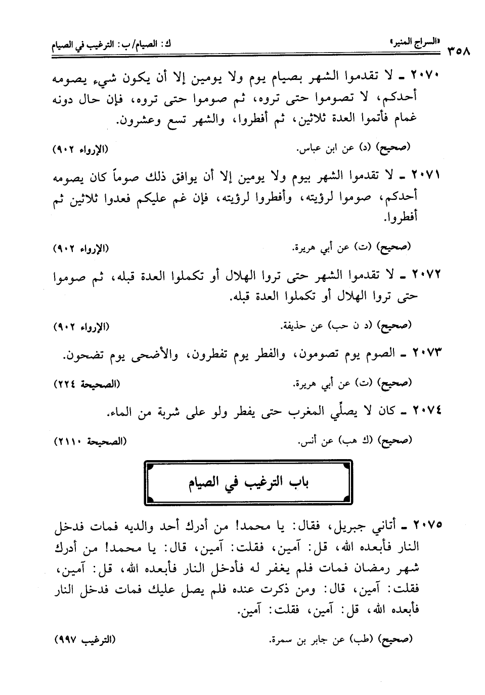 كتاب السراج المنير في ترتيب أحاديث صحيح الجامع الصغير (اسم الجزء: 1)